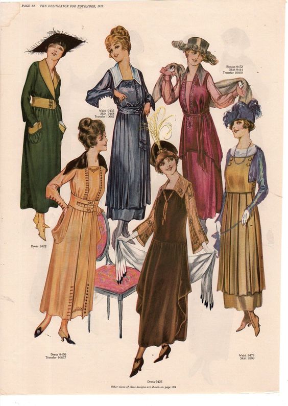 During the war, many women began to wear more simple and functional clothing due to many women having to work in the factories. This included uniforms like pants and overalls. Corsets were also seen less and less to make way for a softer and more fluid silhouette.